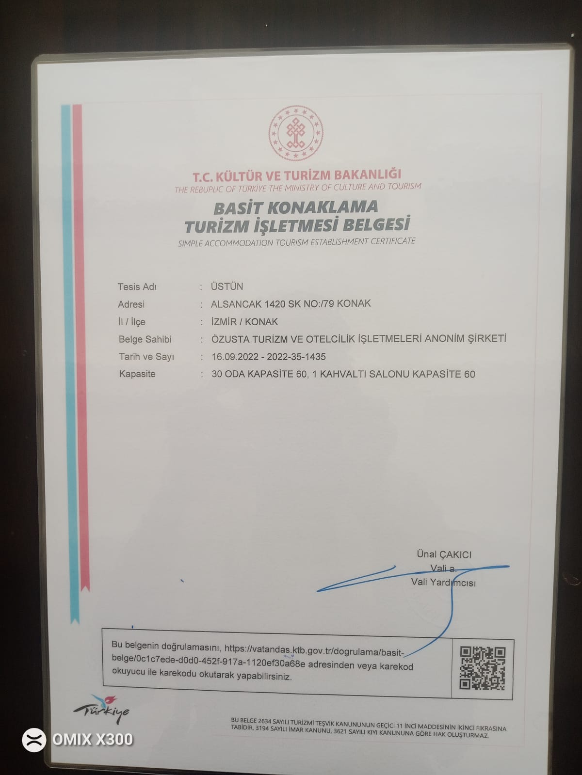 Kültür ve Turizm Bakanlığı - Basit Konaklama Belgesi: 2022-35-1435